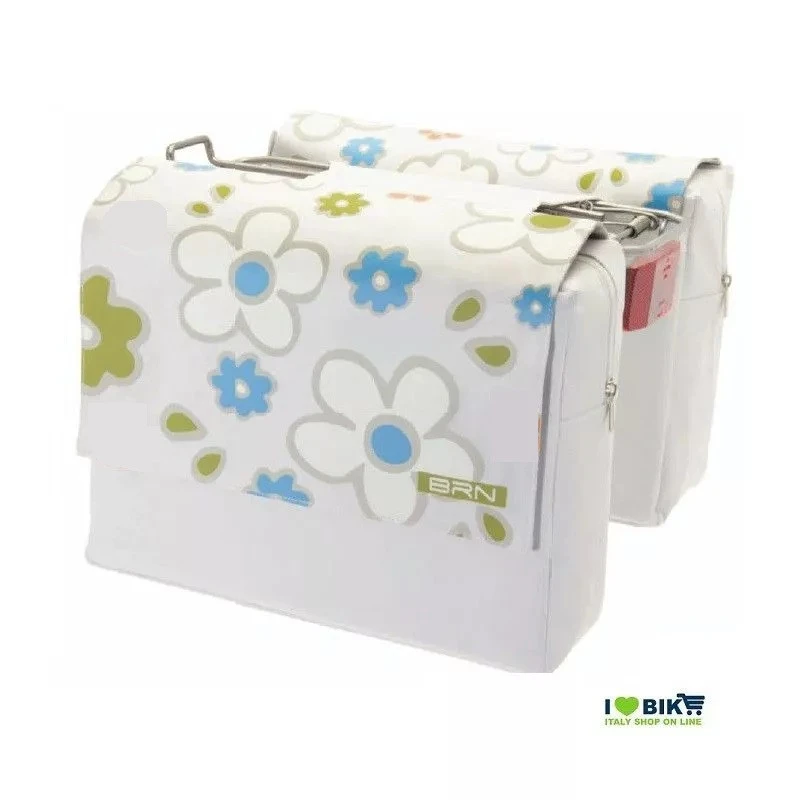 Coppia Borse per bicicletta posteriori a fiori bianchi.