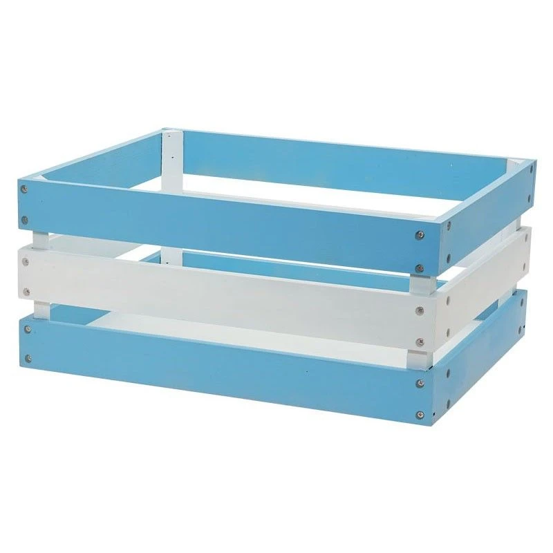 Cesto in legno Versilia azzurro bianco rinforzato