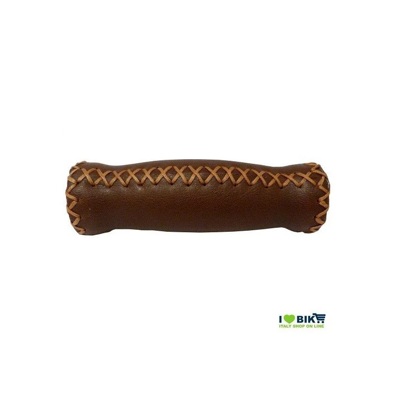 Coppia manopole in pelle con impunture vintage marrone