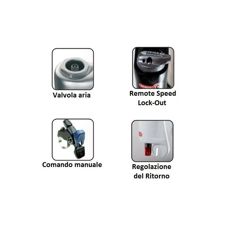 – Accessori: Lockout attraverso il comando remoto posto sul manubrio, ritorno regolabile