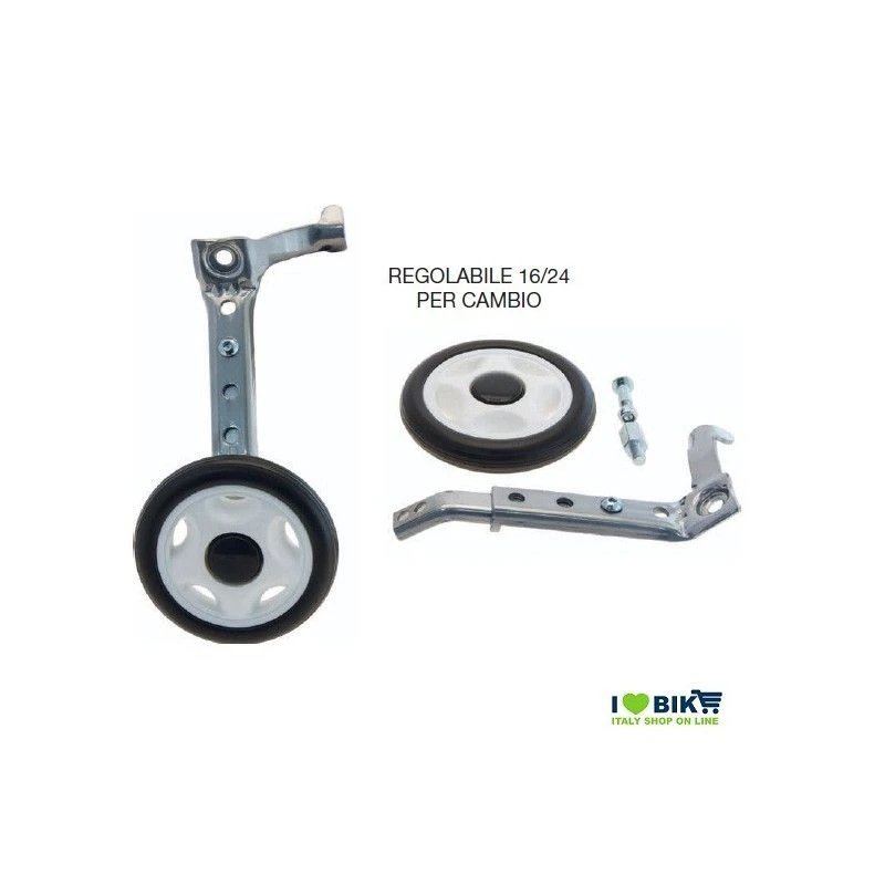 Le ruotine stabilizzatori regolabili sono ideali per essere montati su biciclette del 16, 20 e 24 anche con cambio.